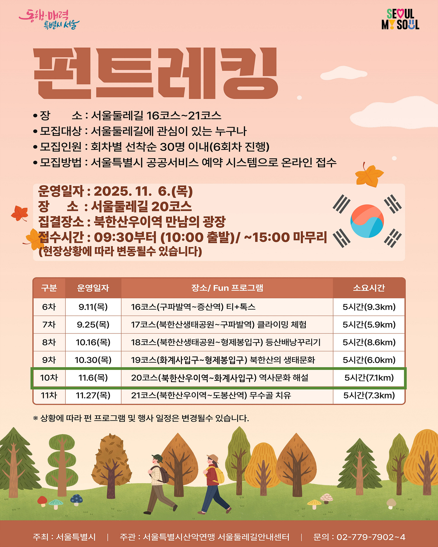 서울둘레길 펀트레킹 10차 안내(11월 6일)