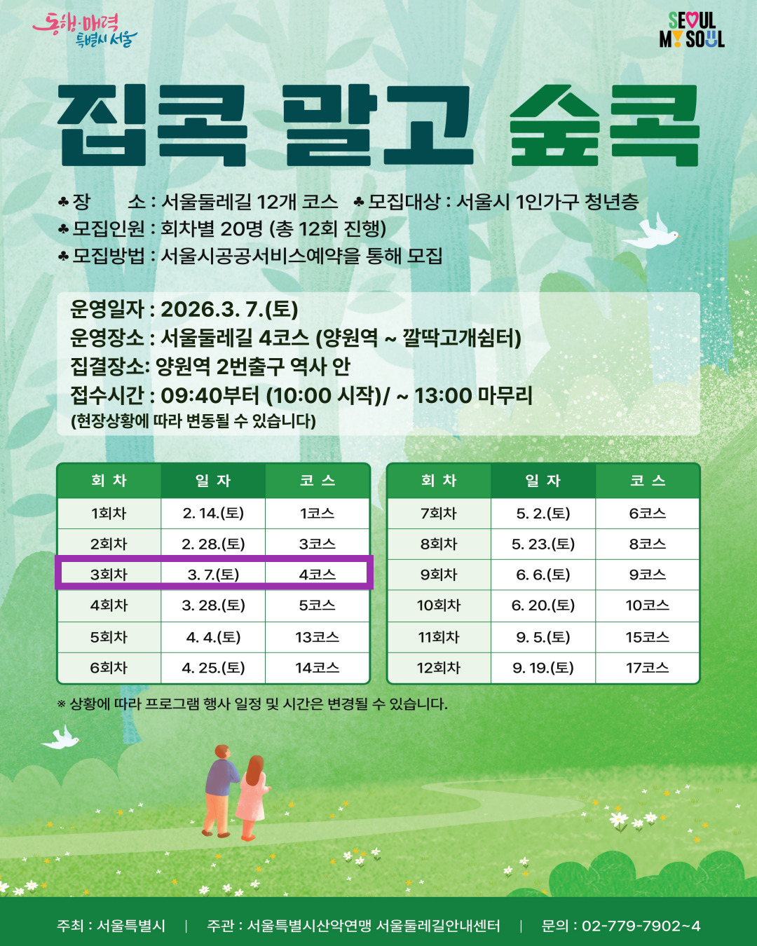 ** 부득이한 사유로 불참 사유 발생시 서울둘레길안내센터(02-779-7902)로 연락부탁드립니다.