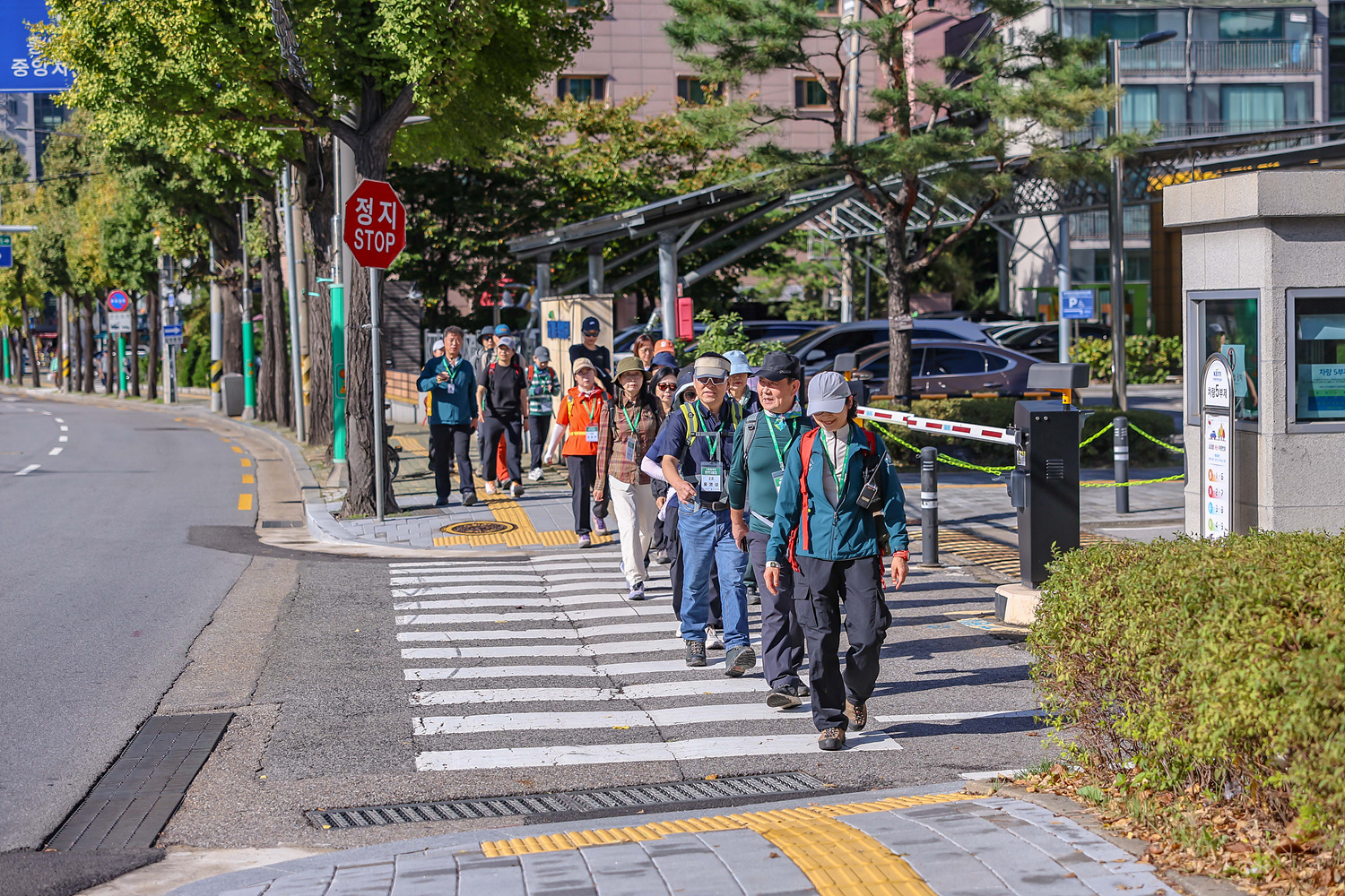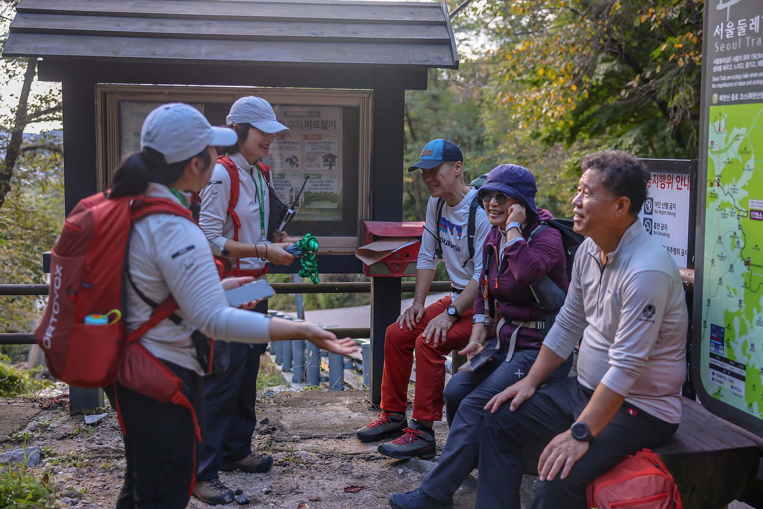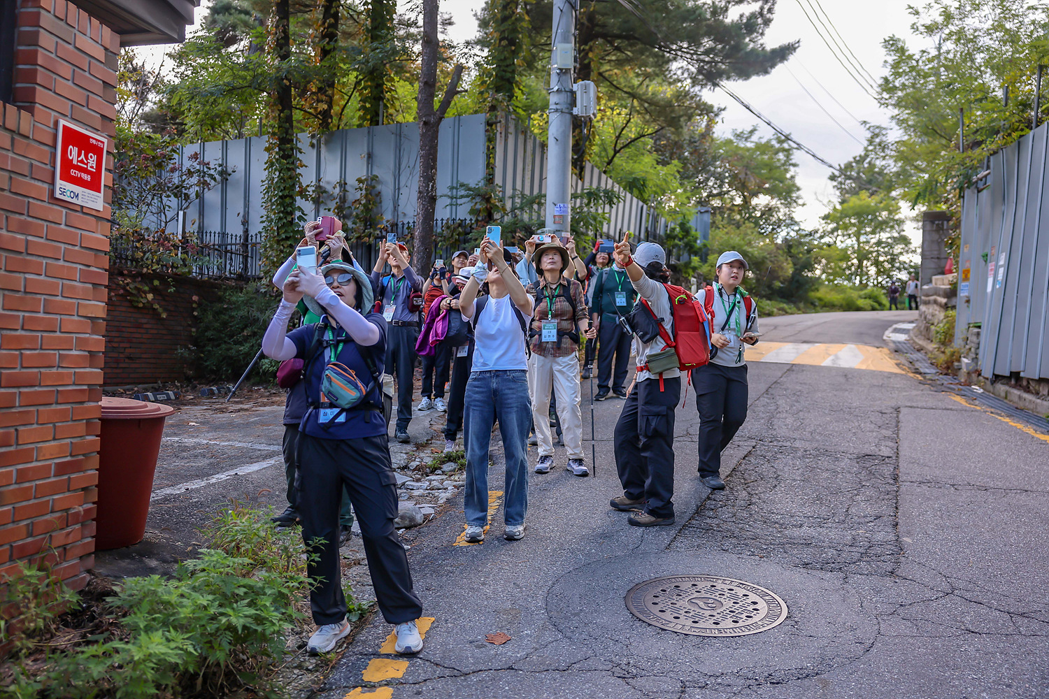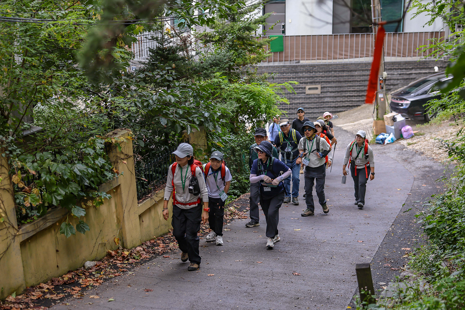 북한산의 연봉을 두루 조망할 수 있는 전망대에서 단체 사진을 찍고 평창동 마을길로 들어갔어요. 아직까지 단풍은 없었지만, 서울둘레길 18코스가 주는 다양한 체험으로 마음은 울긋불긋 단풍처럼 fun fun 해 지는 것 같았어요.