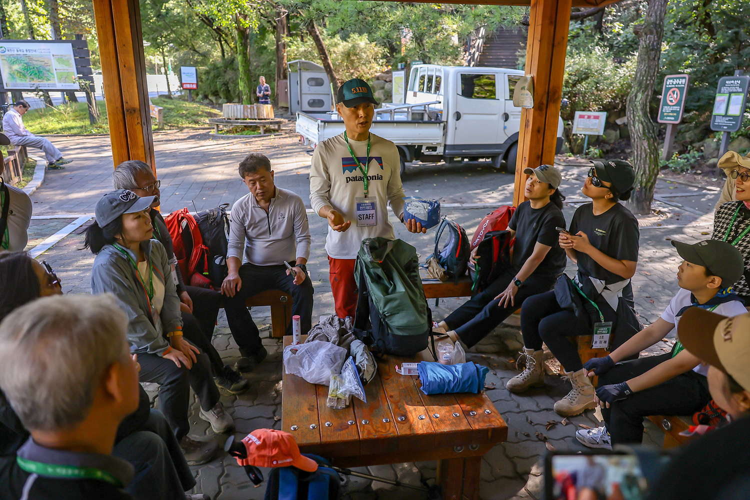약 30분간의 강의 후 안전체조와 안전운행을 위한 주의사항을 전달한 뒤 18코스 산행을 진행했어요.