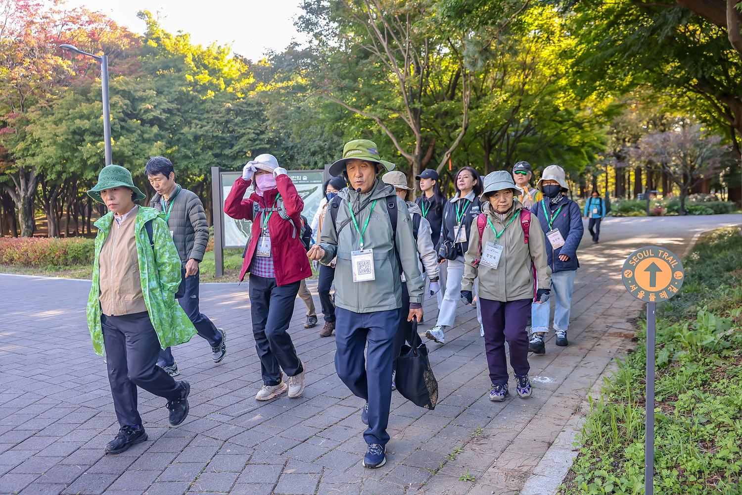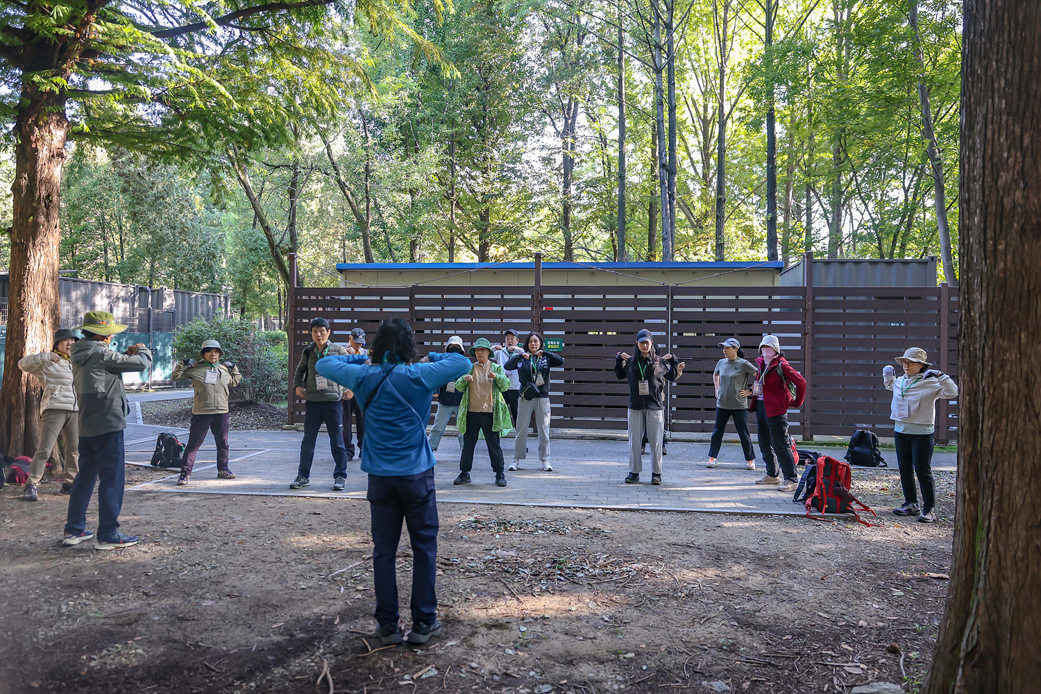 양재시민의숲역 5번 출구에서 집결하여 안내센터가 있는 매헌시민의숲으로 이동하여 스탬프도 찍고 센터도 소개한 뒤 오늘 일정과 강사소개를 한 뒤 스트레칭을 하며 운행을 위한 준비를 했습니다.