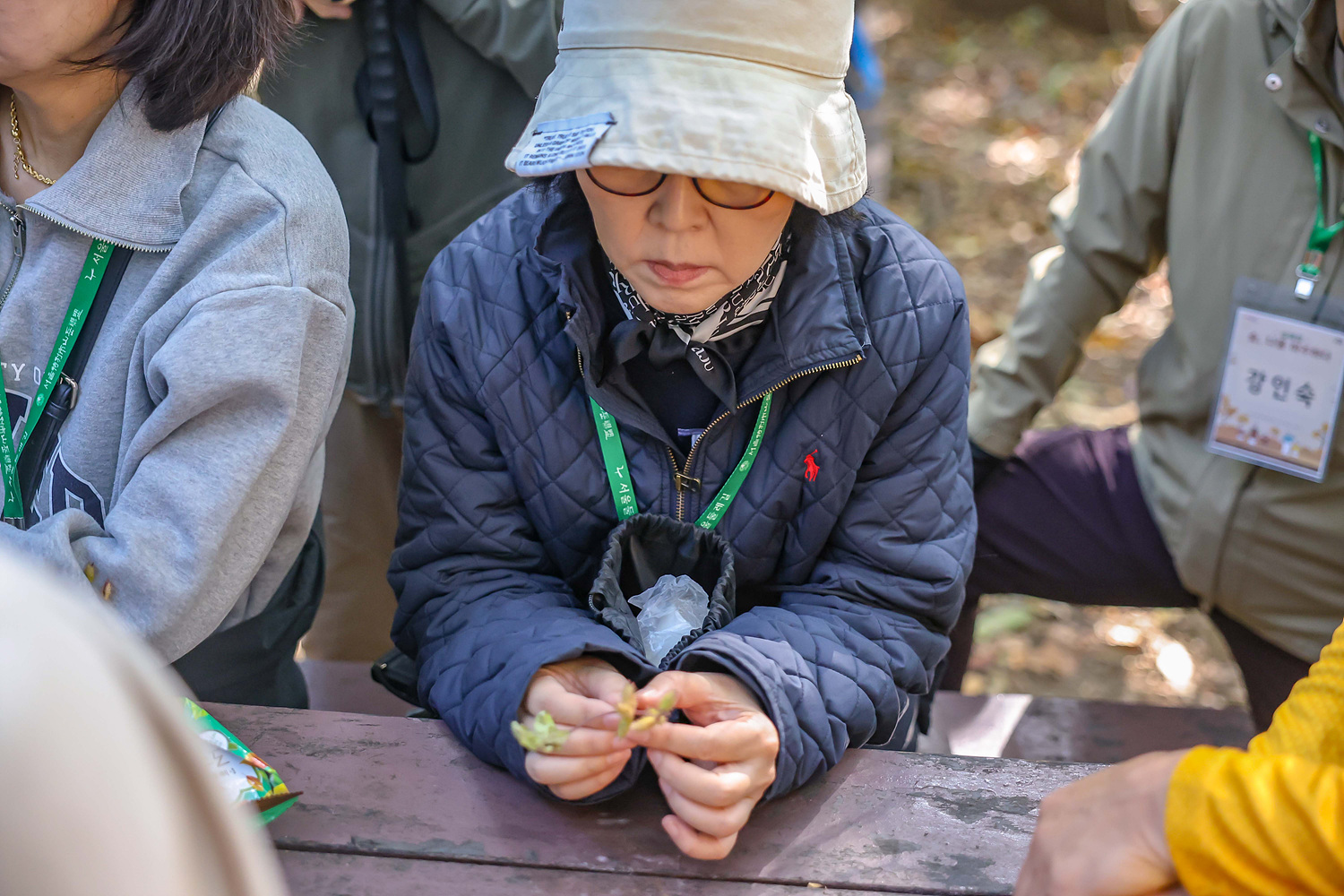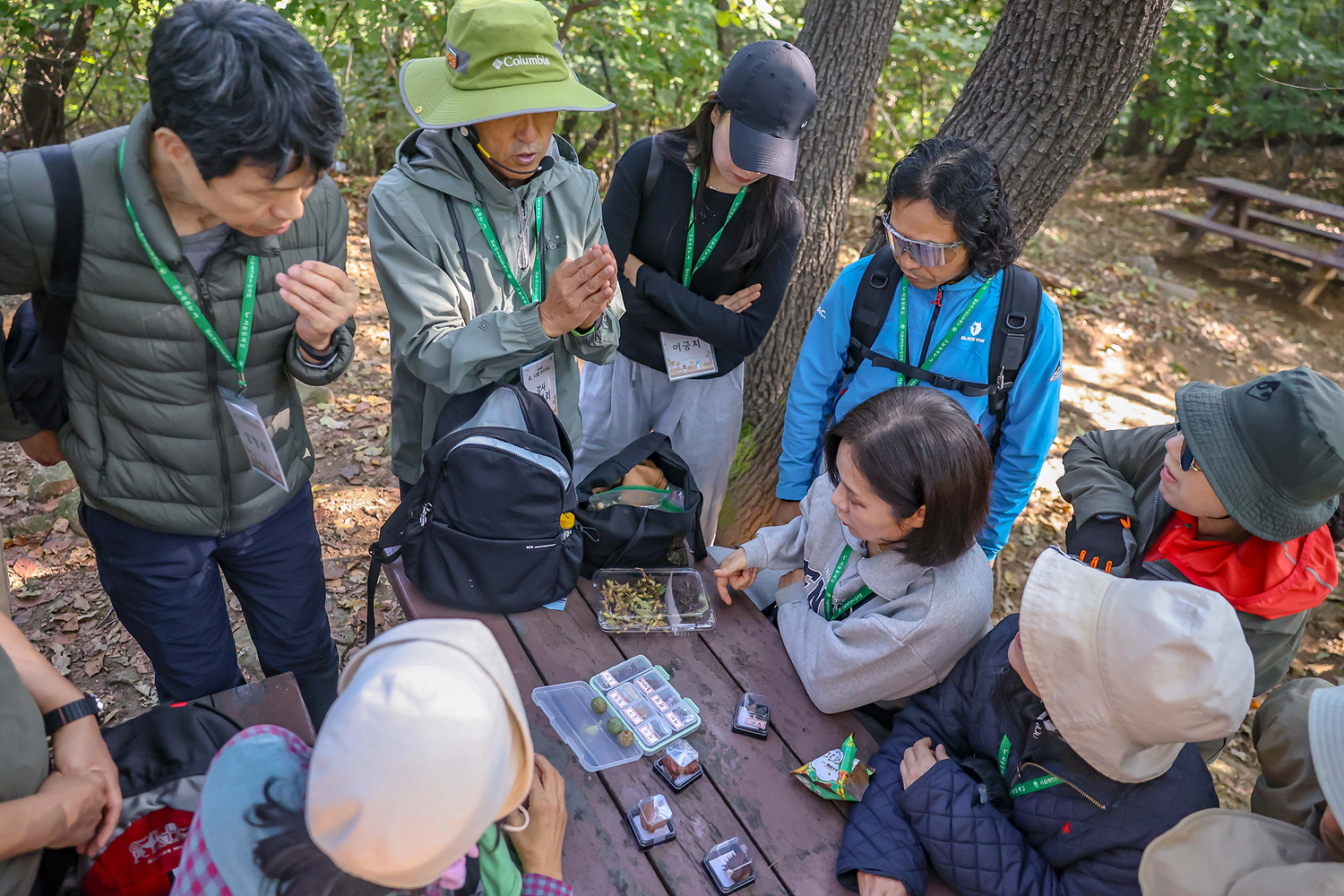 강사님이 배낭을 열며 갖가지 씨앗들이 담긴 열매통들을 꺼내자 모두 호기심 가득한 천진난만한 아이들의 모습처럼 집중하며 이야기를 들으셨어요.