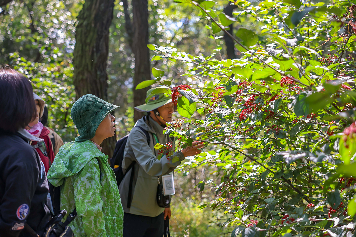 숲해설을 하시는 강사님은 눈길이 가는 곳마다 전하고 싶은 이야기가 무척 많으신듯, 가다 서다를 반복하며 가을 숲을 밝히고 있는 붉은 열매, 보라색 꽃, 같은 나뭇잎인데도 모양이 다른 잎, 향수를 불러일으키는 냄새 등 무궁무진 이야기보따리를 풀어놓으십니다.