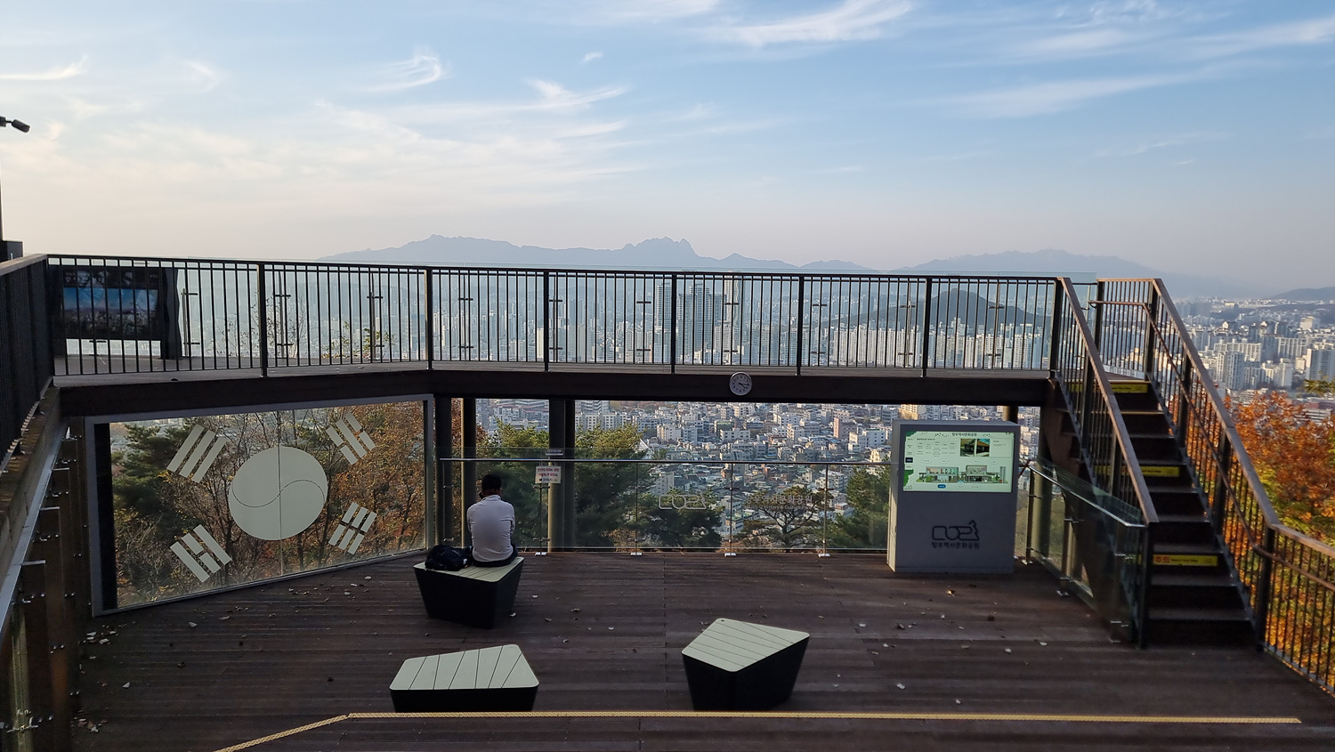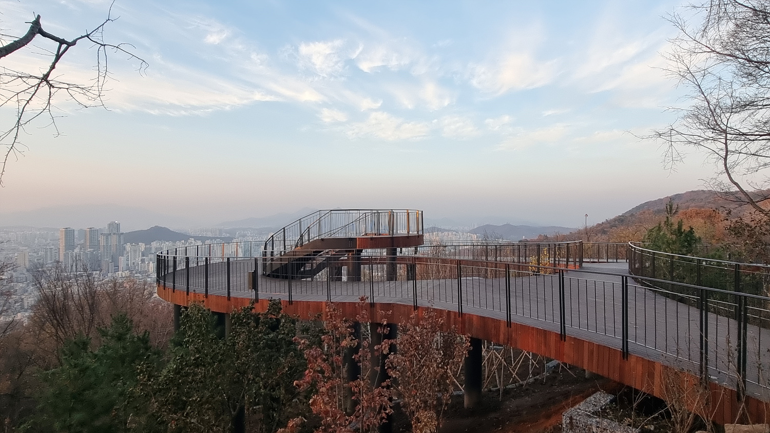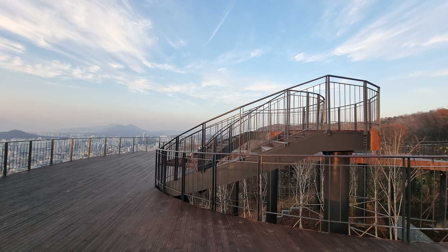 서울의 산줄기를 한눈에 담을 수 있는 하트형 전망 공간이 어우러져