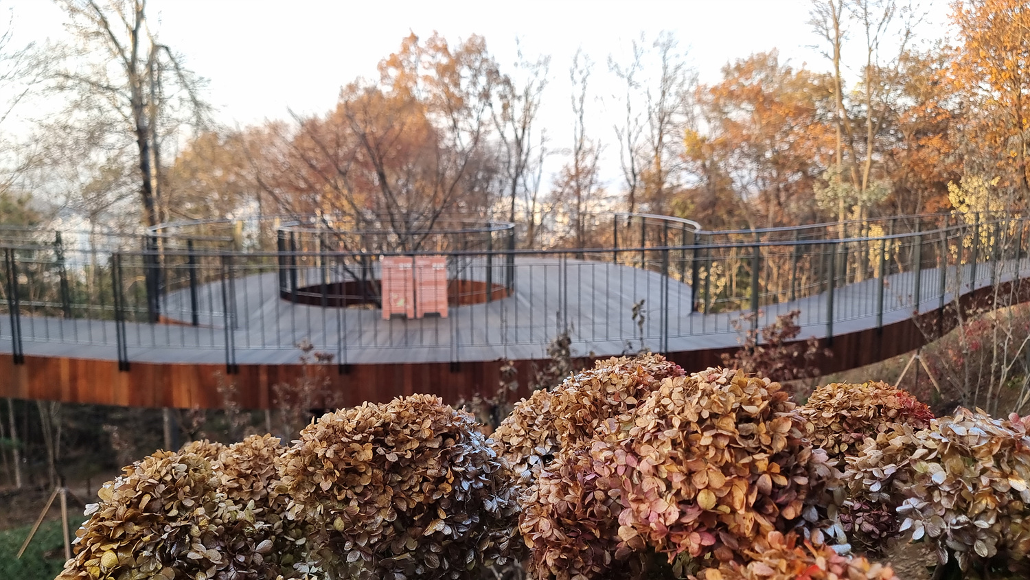 데크 위에 서니 언덕의 나무와 눈높이가 맞춰진 듯하며,