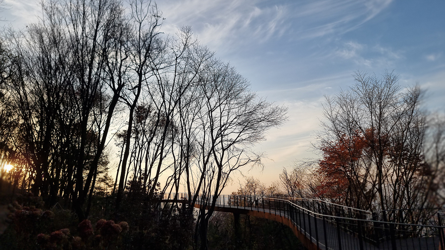 수피가 하얀 자작나무와 산벚나무 등이 심어져 있어 데크를 걷는 나와 어깨 높이를 맞춘 듯했습니다.