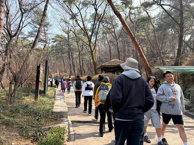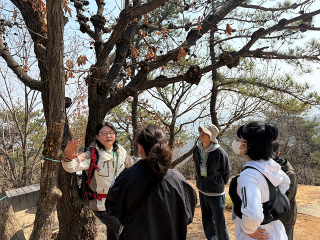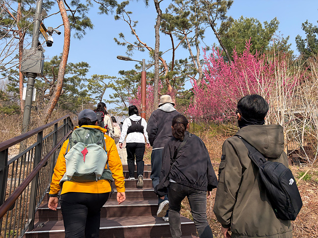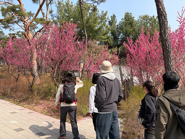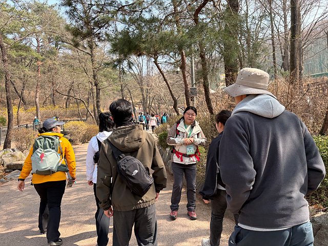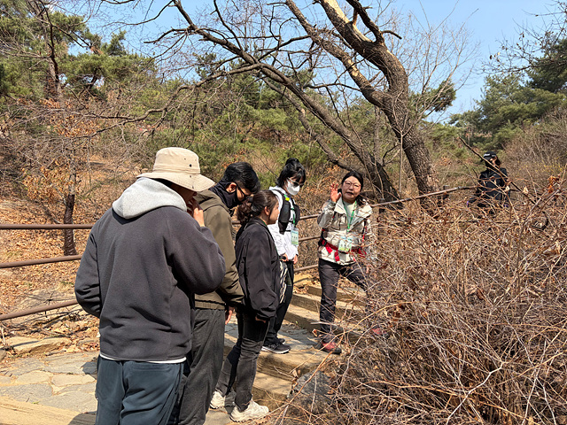 강사님의 안내로 아차산 정상을 향해 오르는 길목마다 다양한 풀과 나무, 꽃에 대한 설명을 들을 수 있었고, 아차산이라는 이름의 유래를 비롯한 역사적 배경까지 더해져 걷는 시간이 더욱 풍성해졌습니다. 길을 걷다 문득 퍼져오는 청매화 향기에 잠시 발걸음을 멈추며, 어느새 성큼 다가온 봄을 온전히 느낄 수 있었습니다.